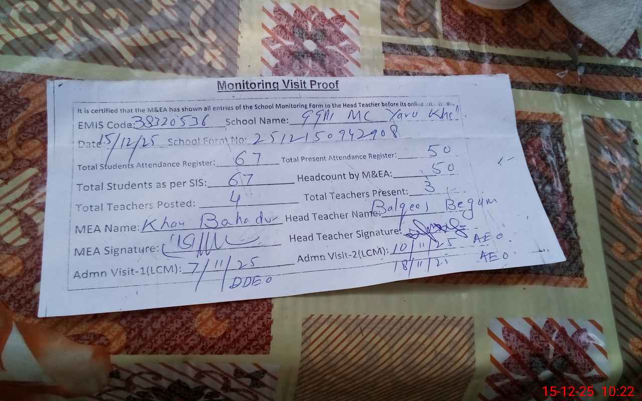 | EMIS Code: 38320536 | Name of School: GGPS MC YARU KHEL | |||
