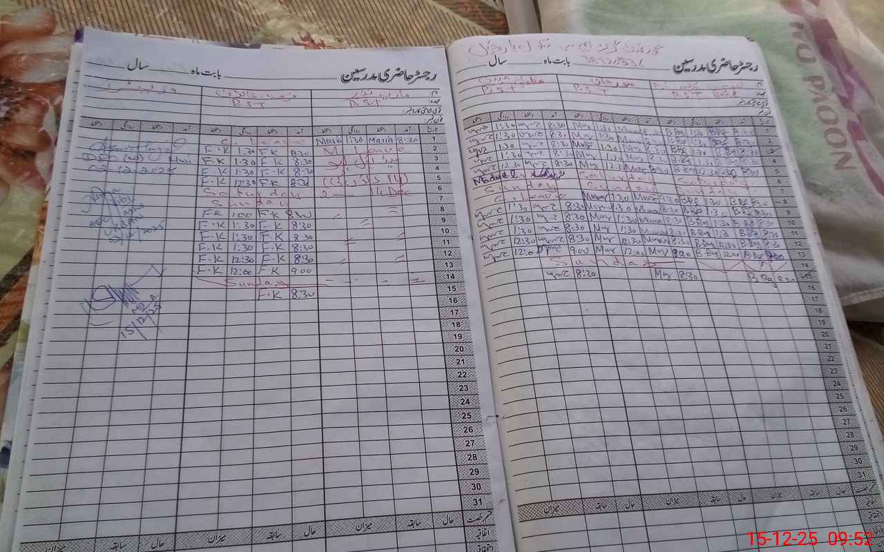 | CNIC | Full Name | Designation | R/C | Absence During Last Calender Month |