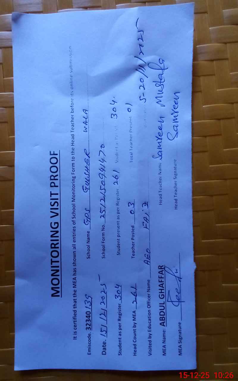 | EMIS Code: 32340139 | Name of School: GPS GULSHER WALA | |||