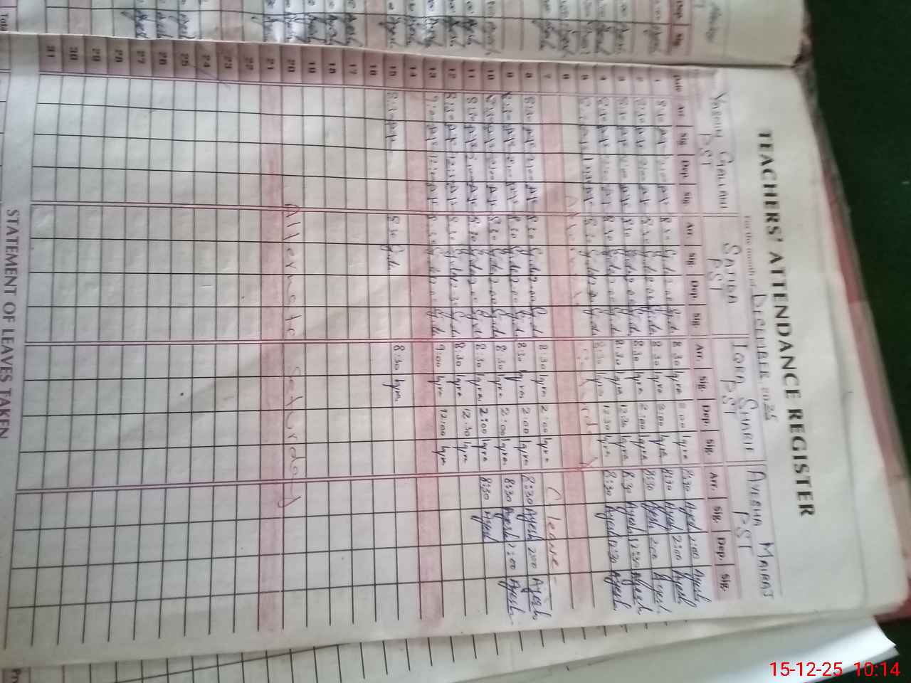 | Attendance Register | Head Teacher | MEA with School | Visit Proof |
