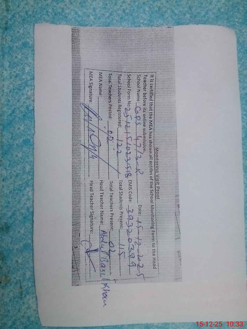 | EMIS Code: 39320399 | Name of School: GPS CHAK NO. 47/3-R | |||