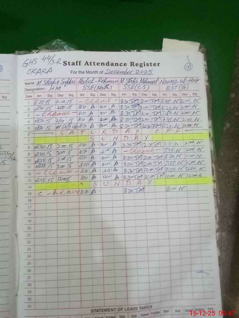 | 35**** | Mu**** Eh**** Az**** | EST Science | Regular | 0 | 0 | 0 | 0 | 0 | 0 | 0 | 0 | 0 | Extraordinary Leave |