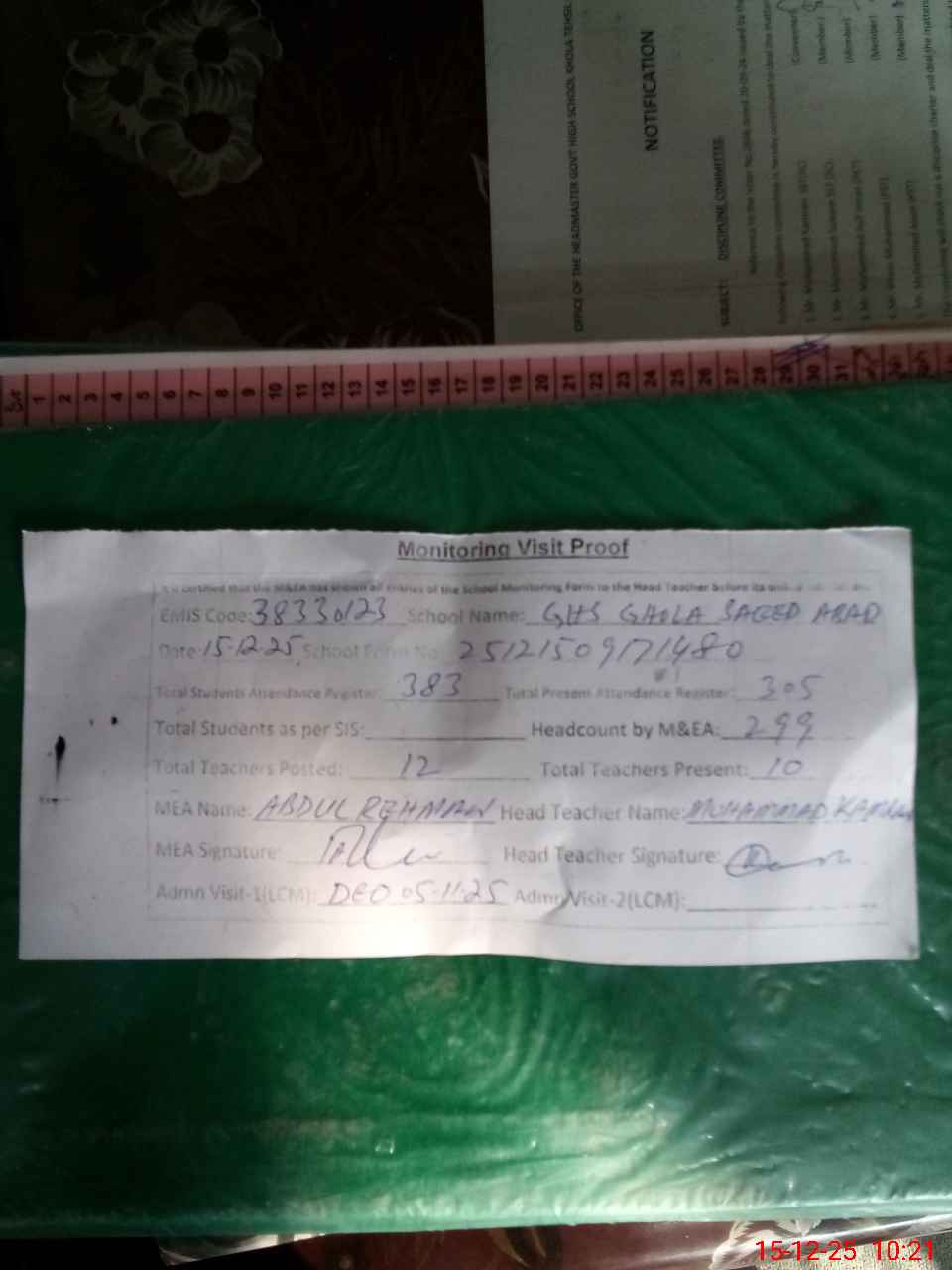 | EMIS Code: 38330123 | Name of School: GHS KHOLA SAEED ABAD PO DING VIA CHASHMA BAR | |||