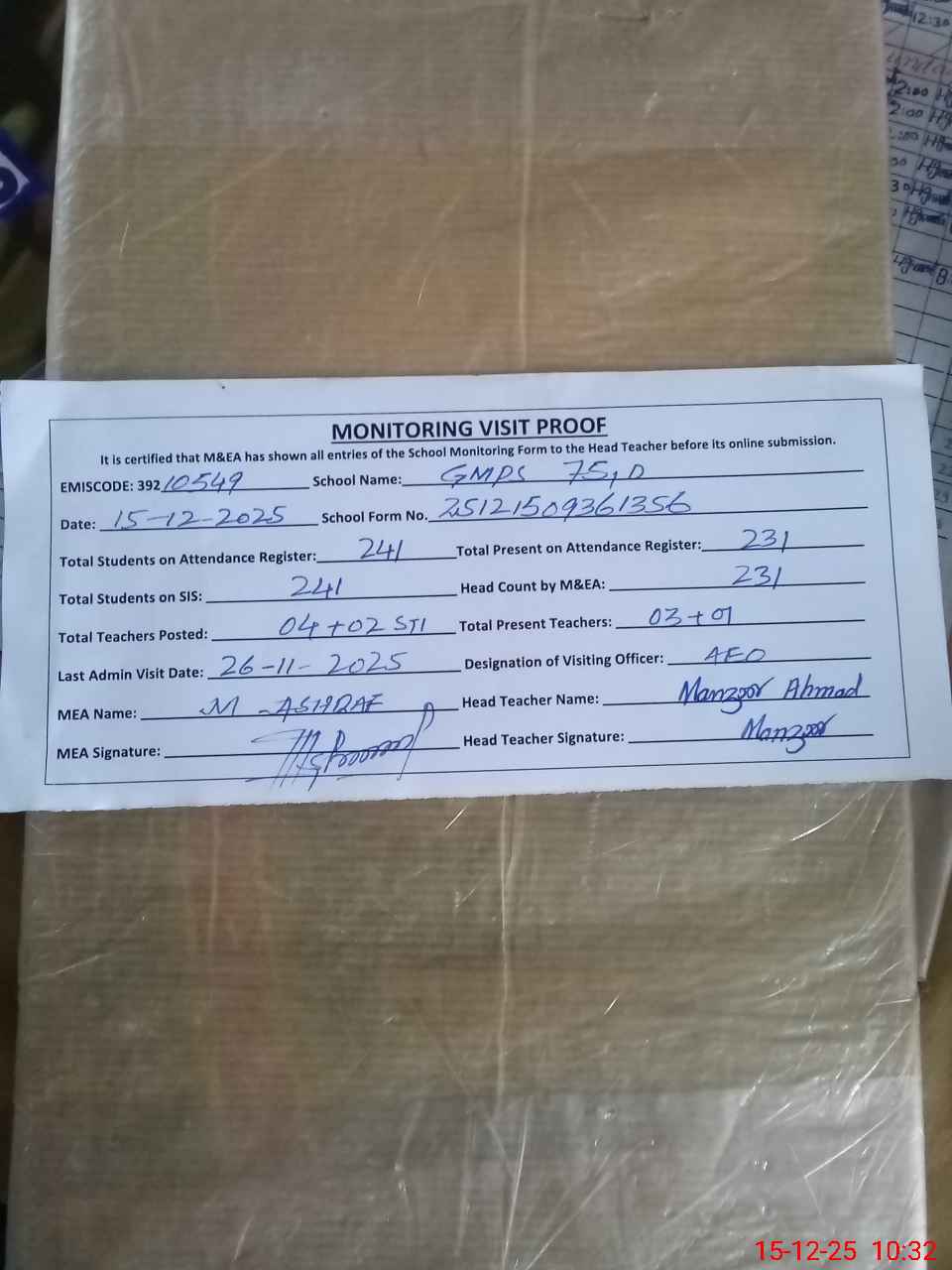 | EMIS Code: 39210549 | Name of School: GMPS 75/D | |||