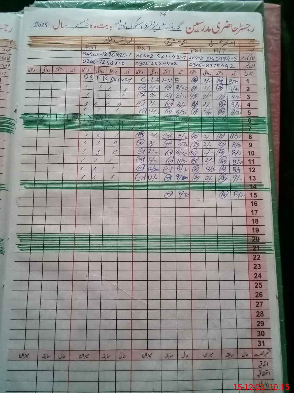 | Name: AS**** AL**** Designation: (School Headmaster's/Headmistress's) PST Phone/Cell Number: 03**** |