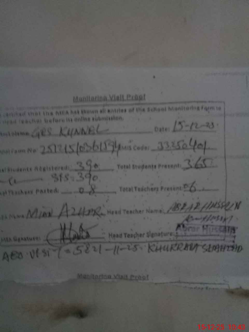 | Certified that this School was Inspected by the Undersigned MEA/DMO Today and the Information Stated Above is as Per Record. | |||||
