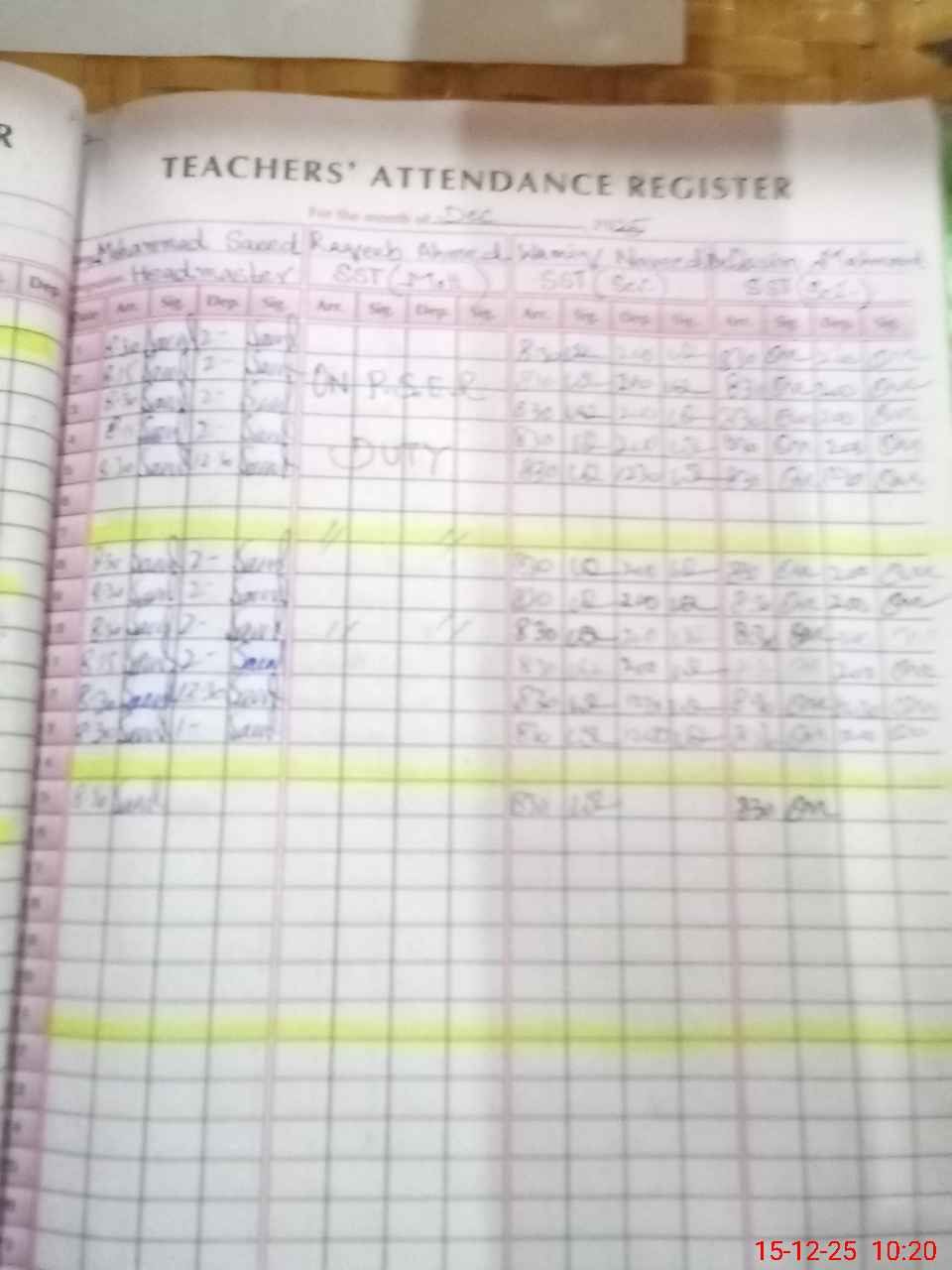 | CNIC | Full Name | Designation | R/C | Absence During Last Calender Month |