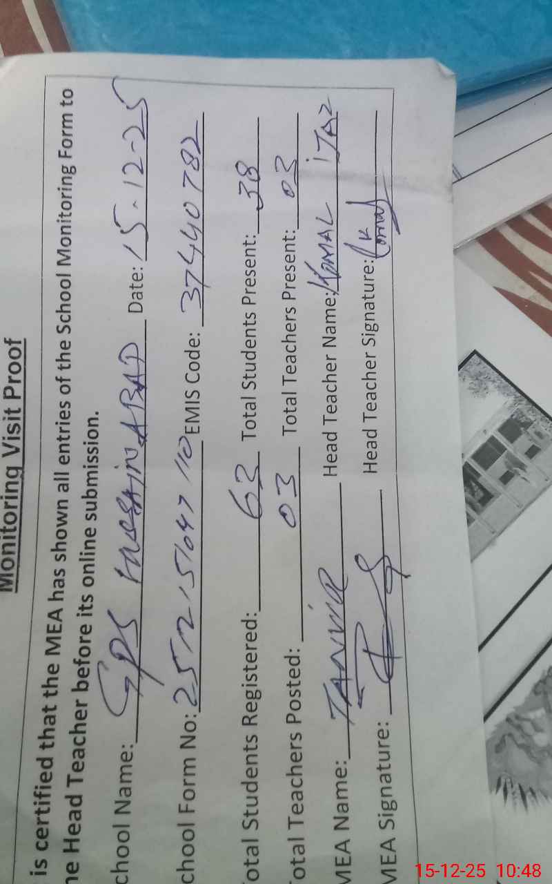 | EMIS Code: 37440782 | Name of School: GPS HUSSAIN ABAD | |||
