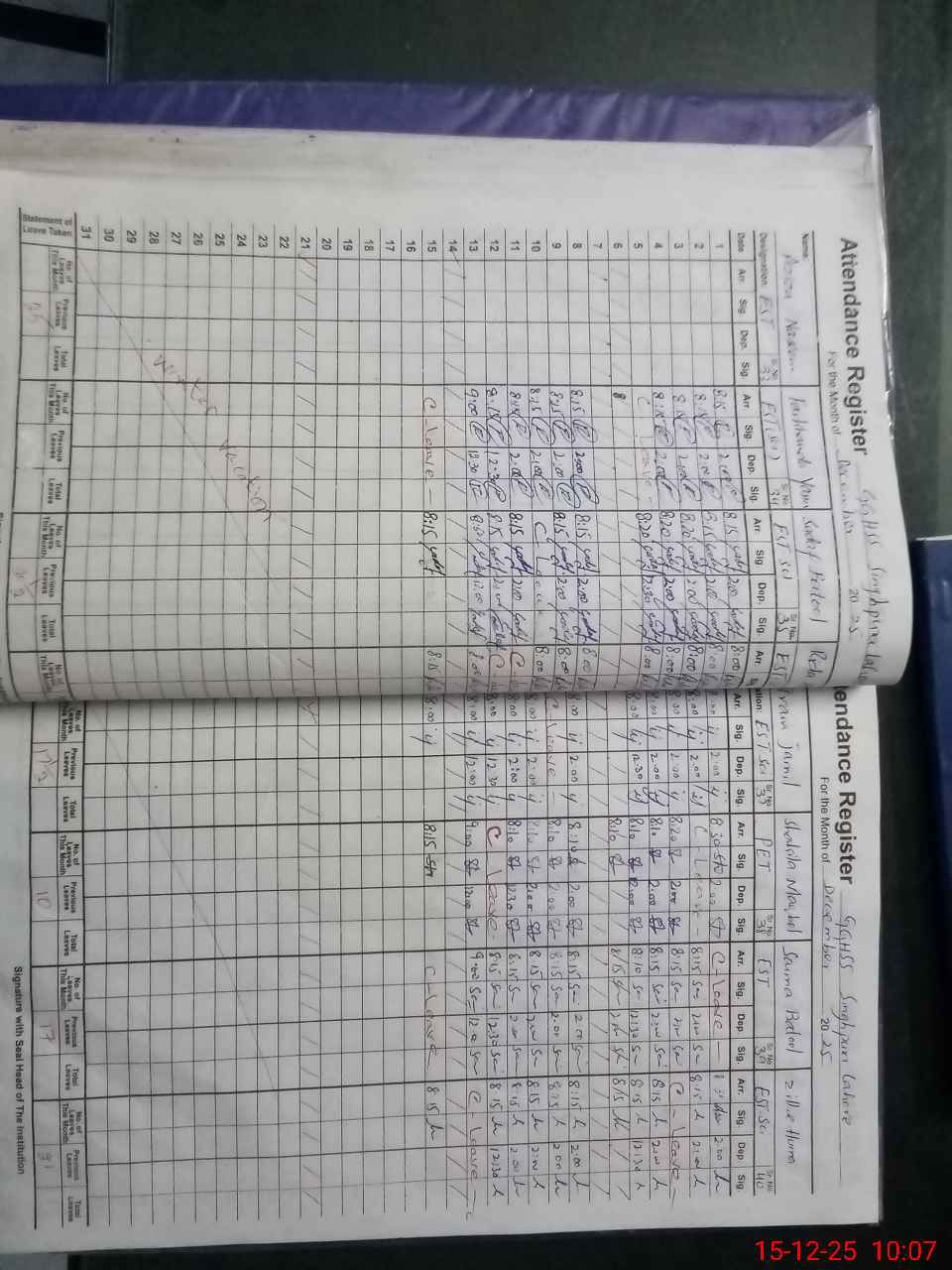 | 34**** | Az**** Na**** Ak**** | Regular | 0 | 0 | 30 | 0 | 0 | 0 | 0 | 0 | 0 | Absent (Un-Authorized) | |