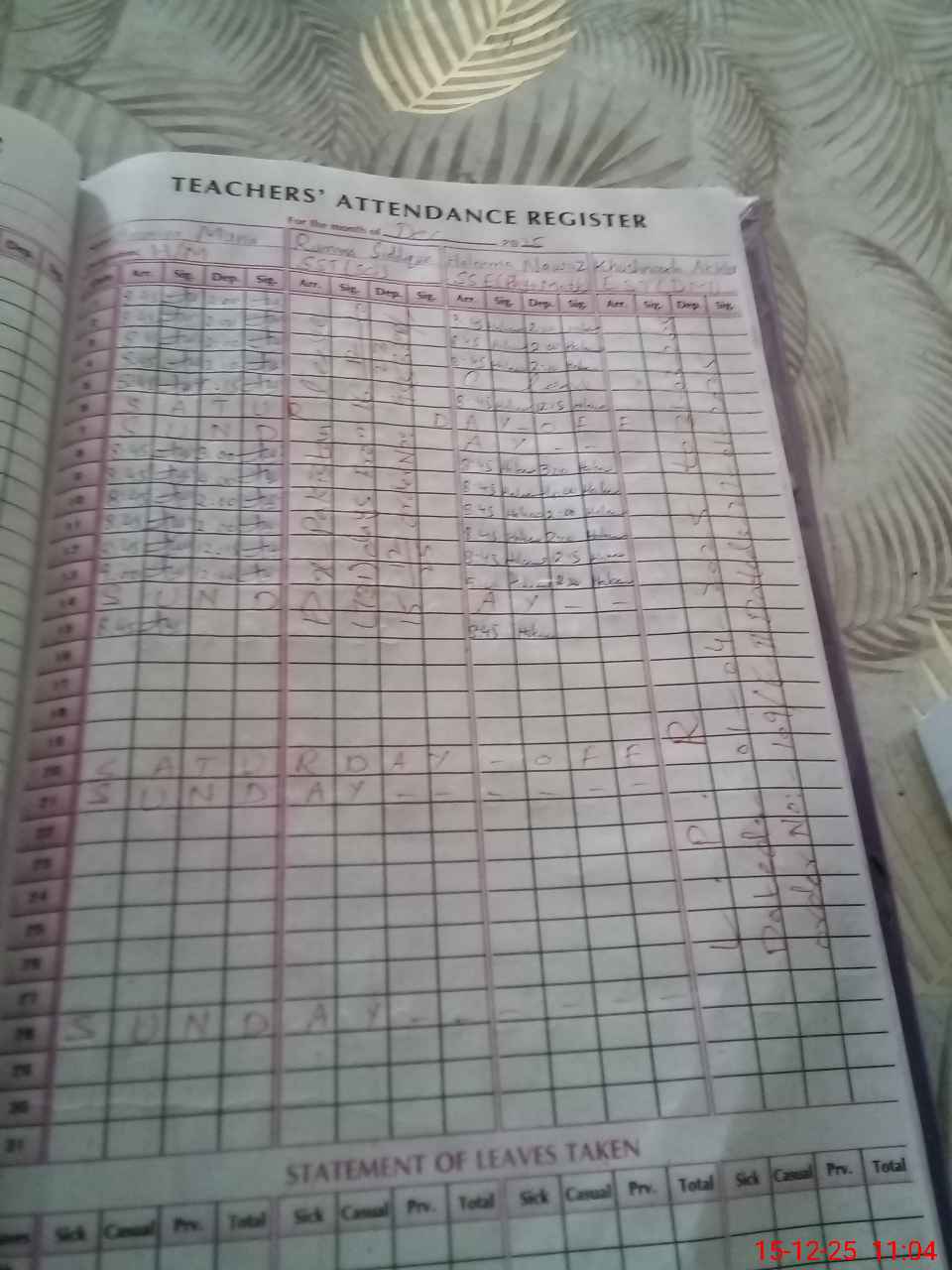 | Leave | Duty | Absent | Maternity | Medical | Ex- Pak |