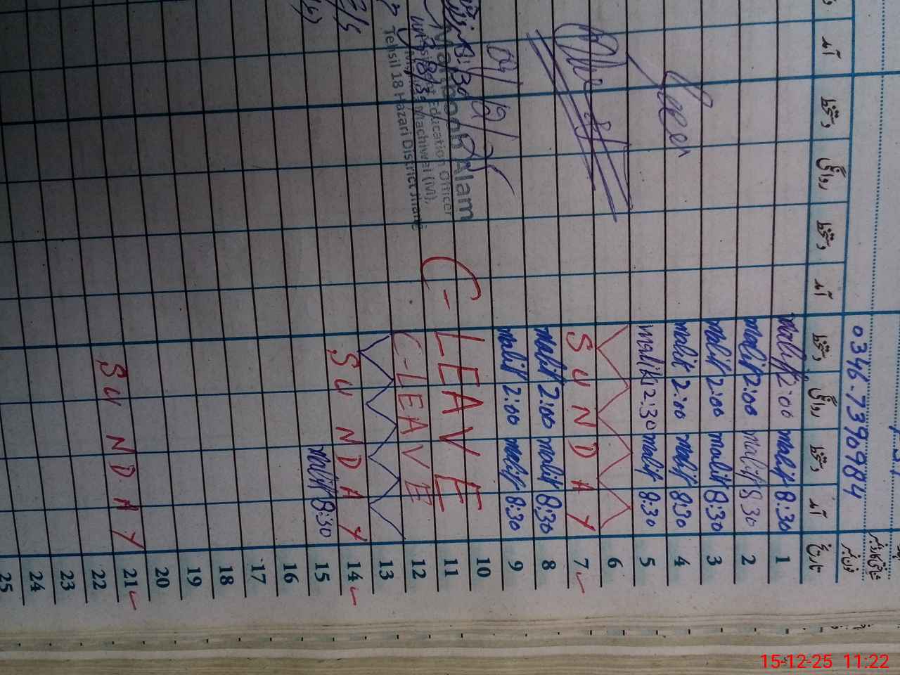 | CNIC | Full Name | Designation | R/C | Absence During Last Calender Month |