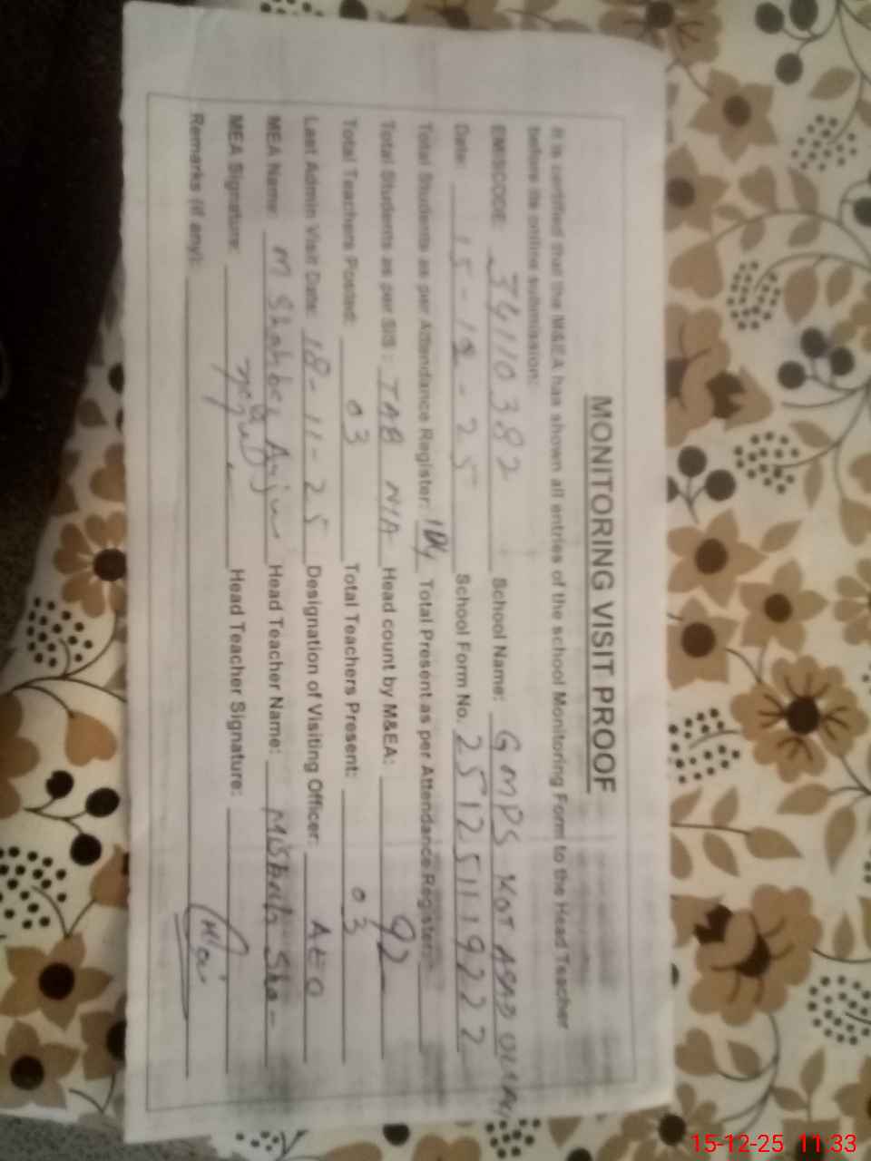| EMIS Code: 34110382 | Name of School: GMPS KOT ASAD ULLAH | |||