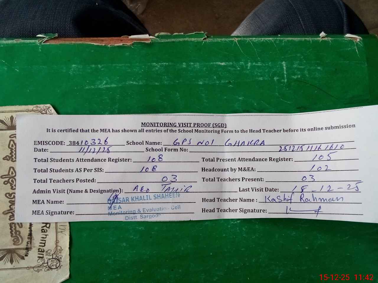 | EMIS Code: 38410326 | Name of School: GPS CHAK NO.1 NB GAKHRA | |||