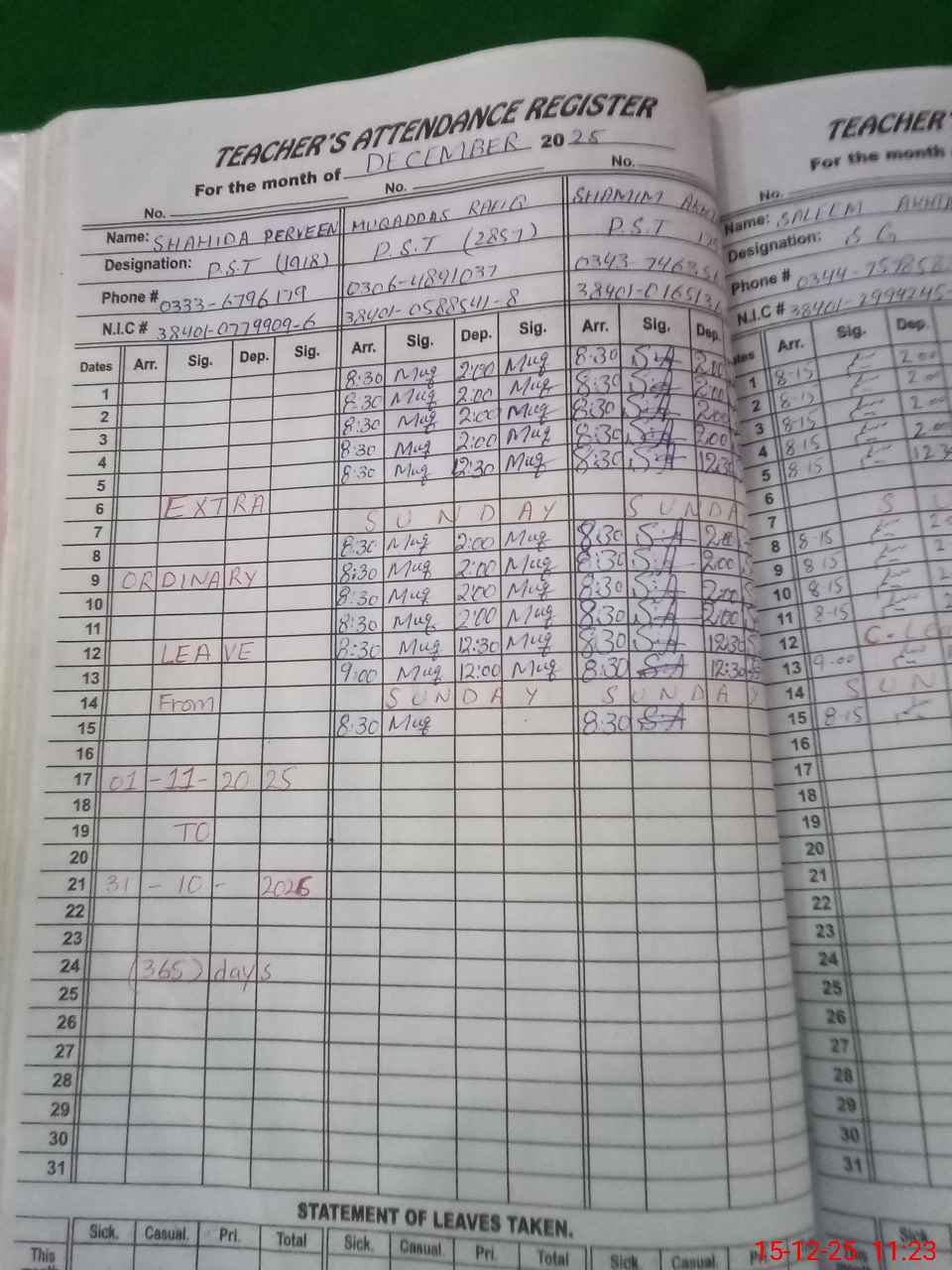 | Name: Mu**** Ra**** Designation: (School Headmaster's/Headmistress's) PST Phone/Cell Number: 03**** |