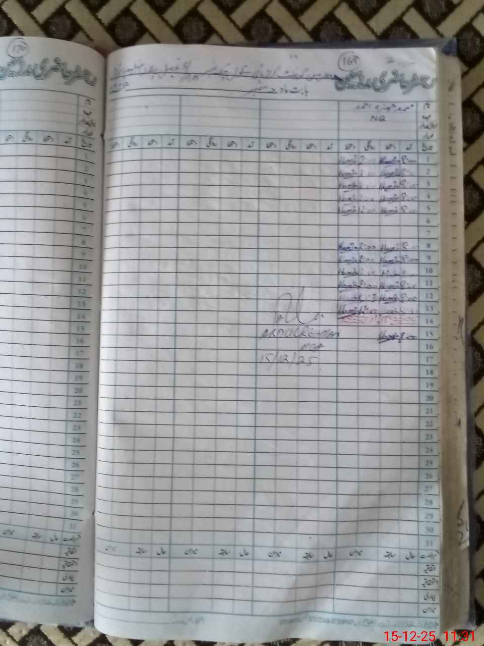 | CNIC | Full Name | Designation | R/C | Absence During Last Calender Month |