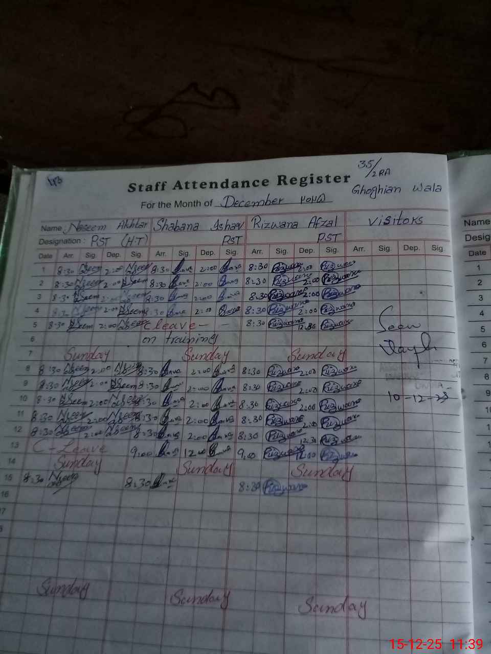 | CNIC | Full Name | Designation | R/C | Absence During Last Calender Month |