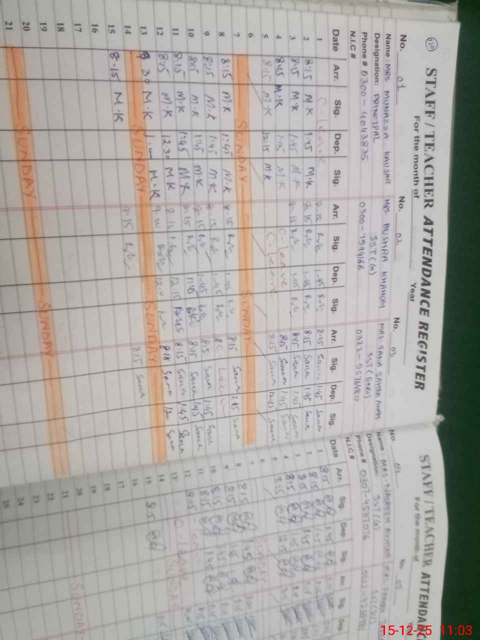 | CNIC | Full Name | Designation | R/C | Absence During Last Calender Month |