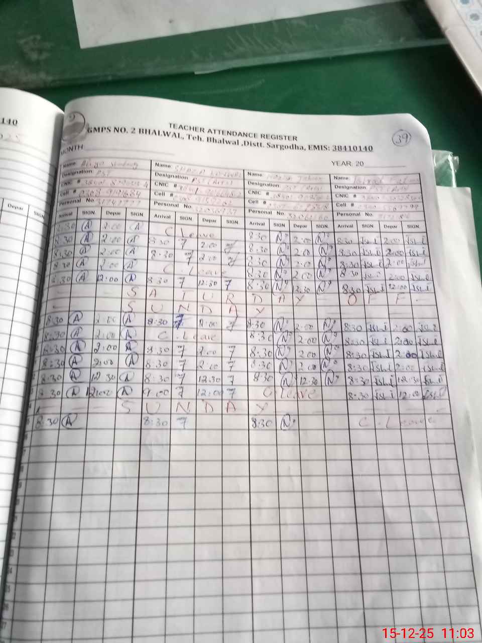 | 38**** | Au**** Pe**** | Regular | 0 | 0 | 3 | 0 | 0 | 0 | 0 | 0 | 0 | Absent (Un-Authorized) | |