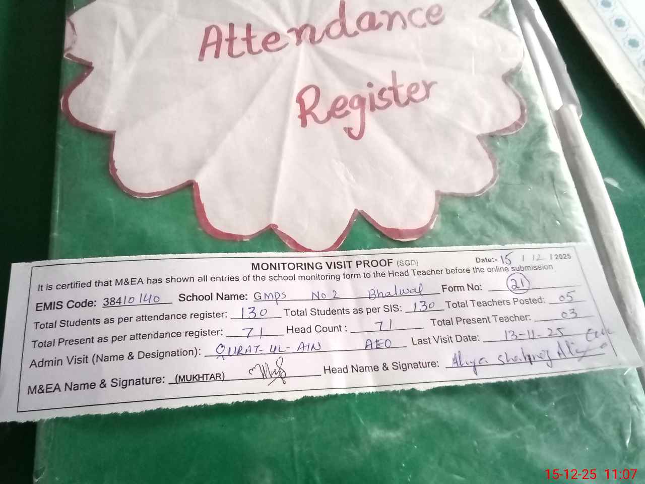 | EMIS Code: 38410140 | Name of School: GMPS NO.2 BHALWAL | |||