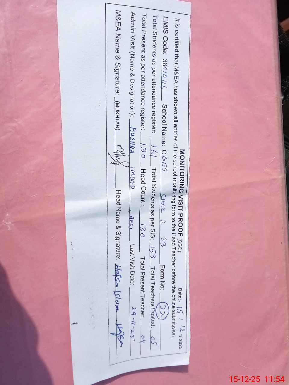 | EMIS Code: 38410116 | Name of School: GGES CHAK NO.2 SB | |||