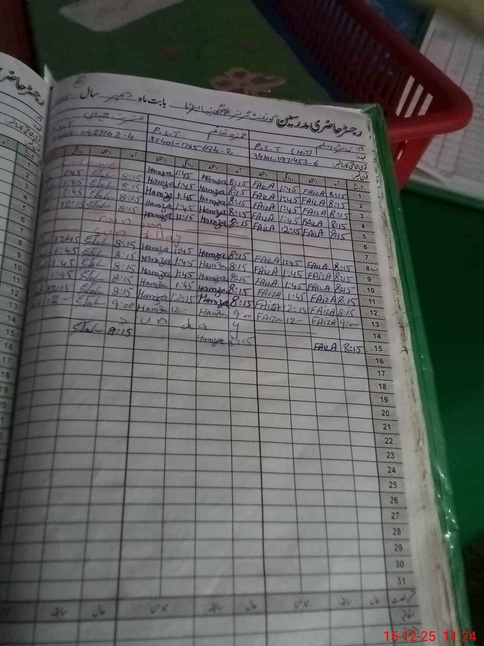 | CNIC | Full Name | Designation | R/C | Absence During Last Calender Month |