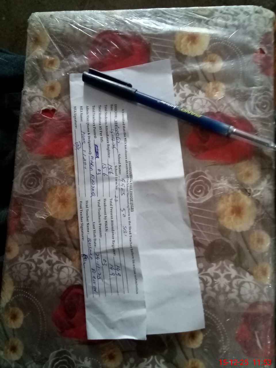 | Attendance Register | Head Teacher | MEA with School | Visit Proof |