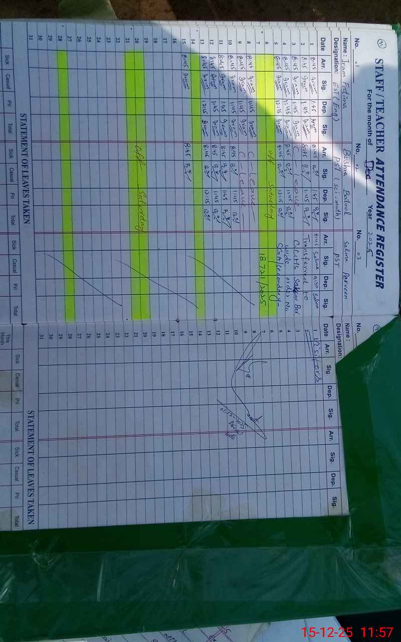 | CNIC | Full Name | Designation | R/C | Absence During Last Calender Month |