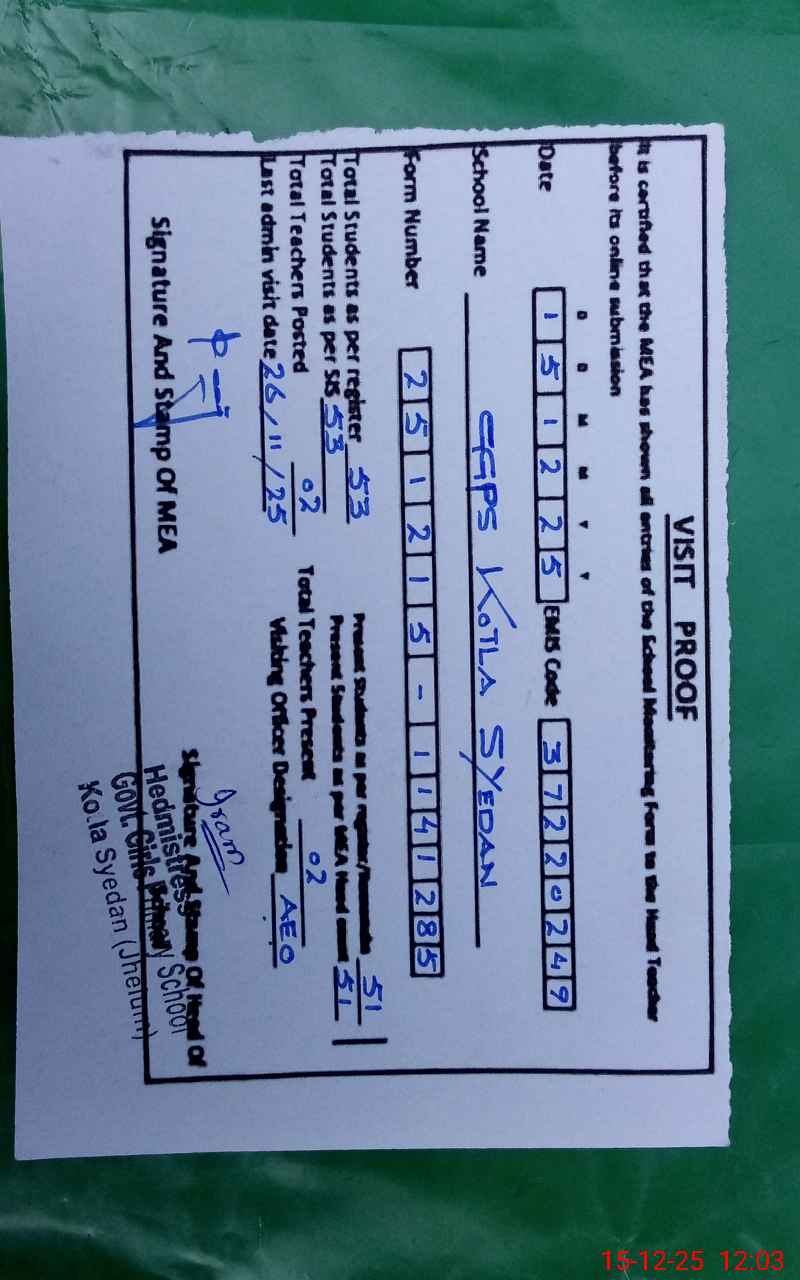 | EMIS Code: 37220249 | Name of School: GGPS KOTLA SYEDAN | |||