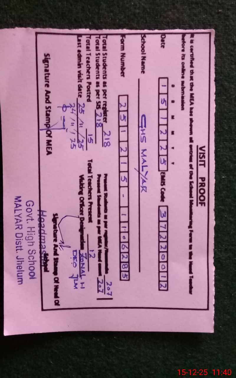 | EMIS Code: 37220012 | Name of School: GHS MALYAR | |||