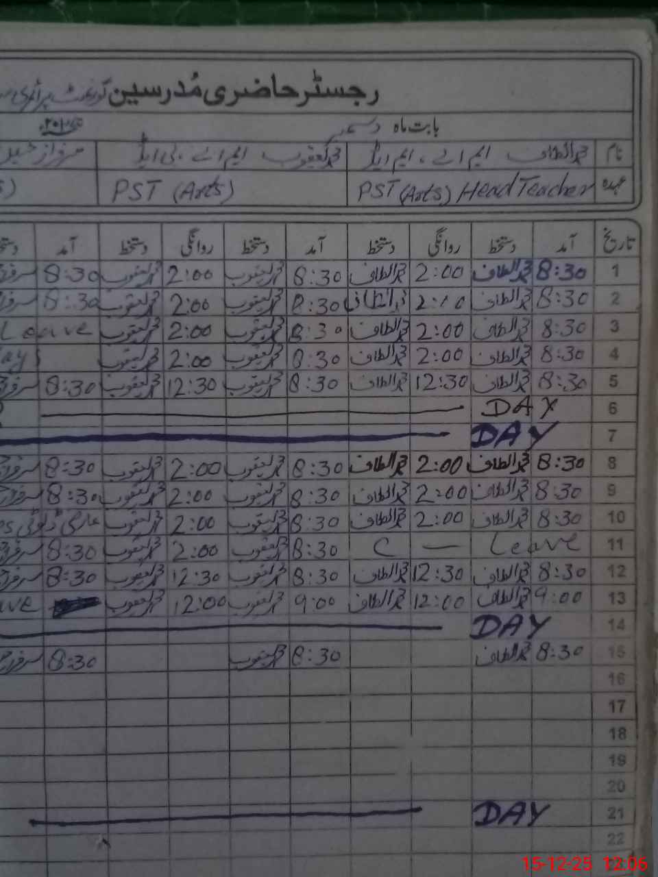 | Name: MU**** AL**** Designation: (School Headmaster's/Headmistress's) PST Phone/Cell Number: 03**** |