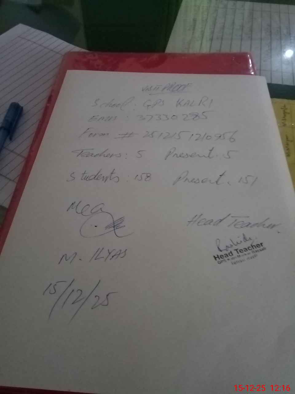 | EMIS Code: 37330285 | Name of School: GPS KALRI | |||