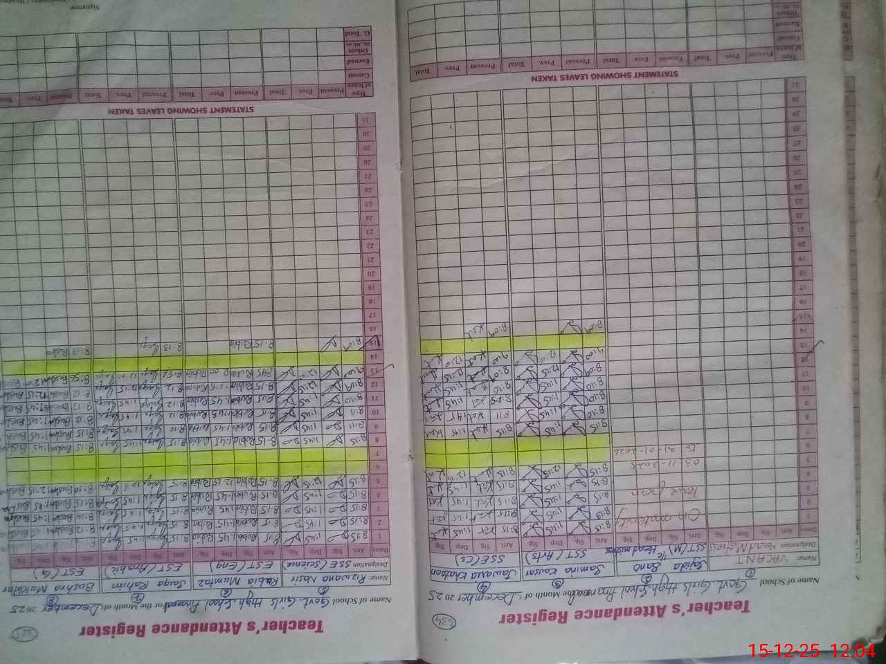 | CNIC | Full Name | Designation | R/C | Absence During Last Calender Month |