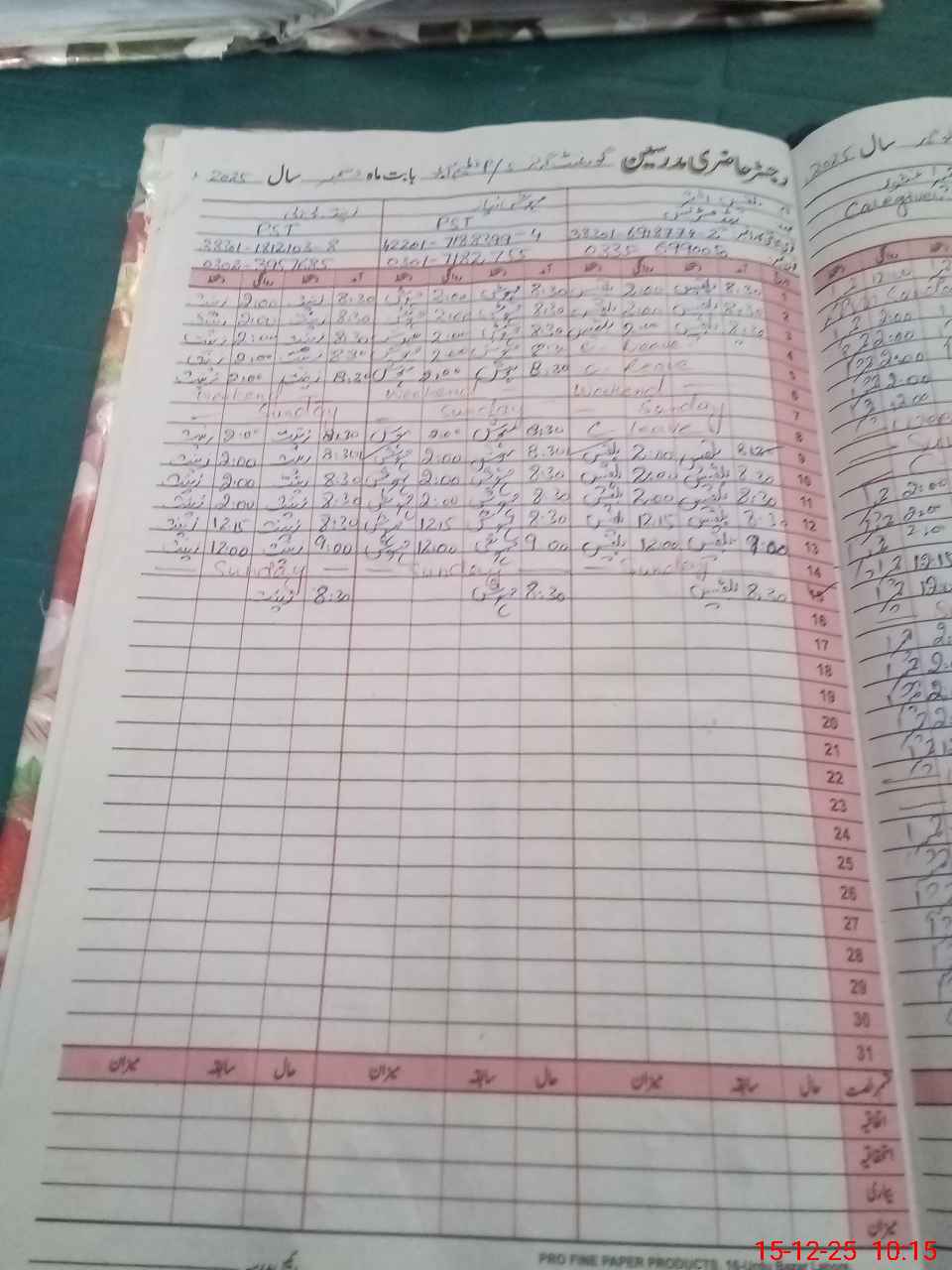 | CNIC | Full Name | Designation | R/C | Absence During Last Calender Month |