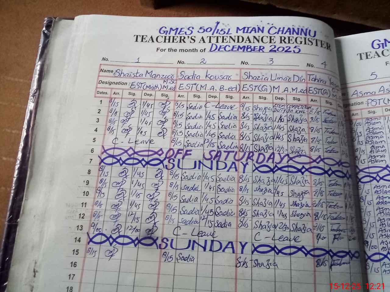 | EMIS Code: 36430098 | Name of School: GGES 50/15-L, MIAN CHANNU | |||