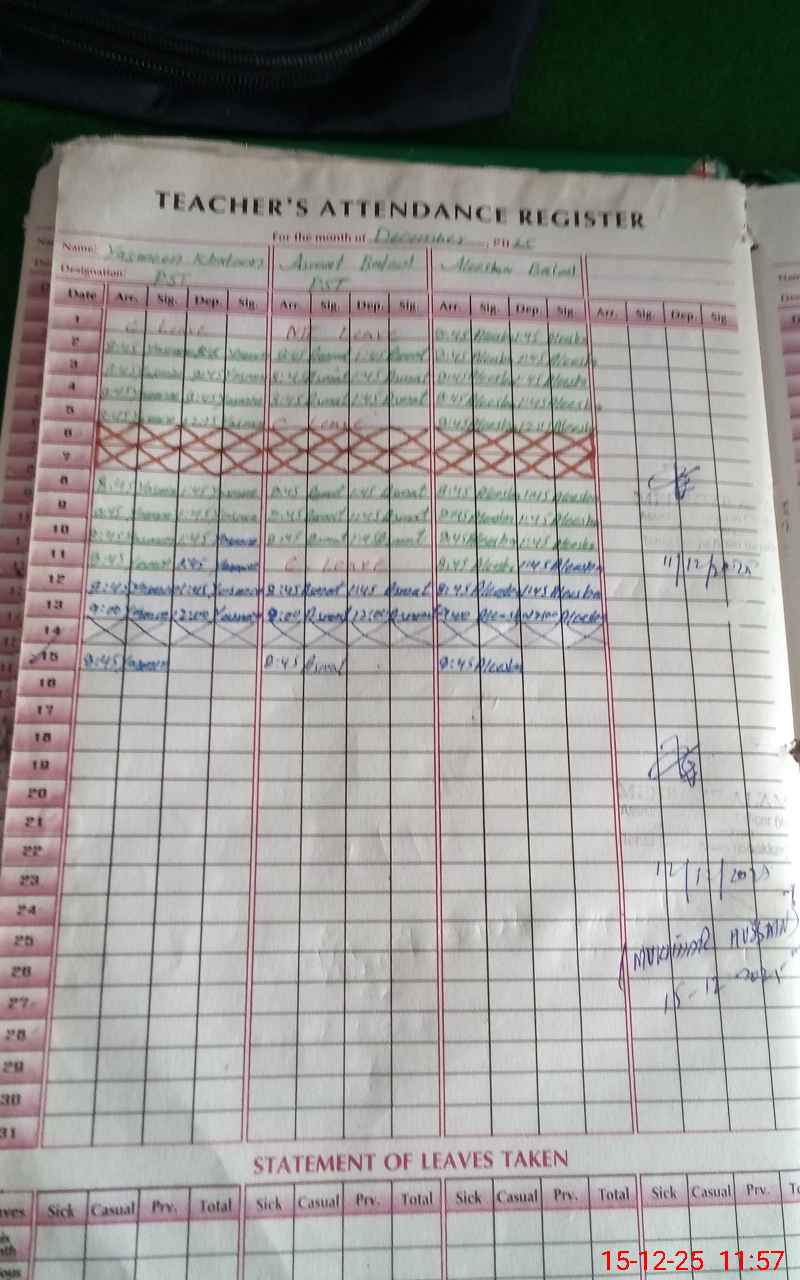 | 38**** | As**** Ba**** | PST Science/Maths | Regular | 0 | 0 | 0 | 0 | 0 | 0 | 0 | 0 | 0 | Absent (Un-Authorized) |