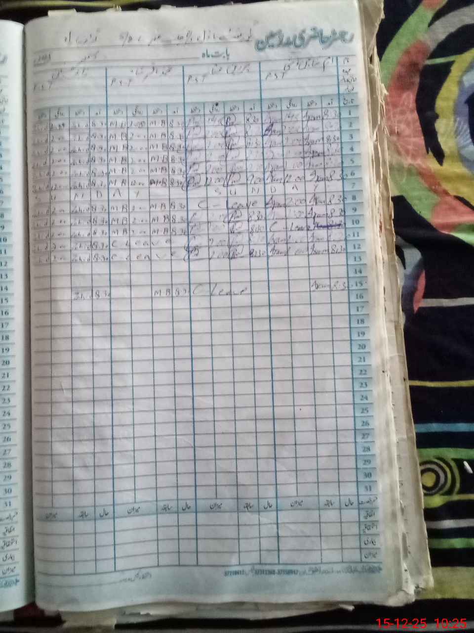 | CNIC | Full Name | Designation | R/C | Absence During Last Calender Month |