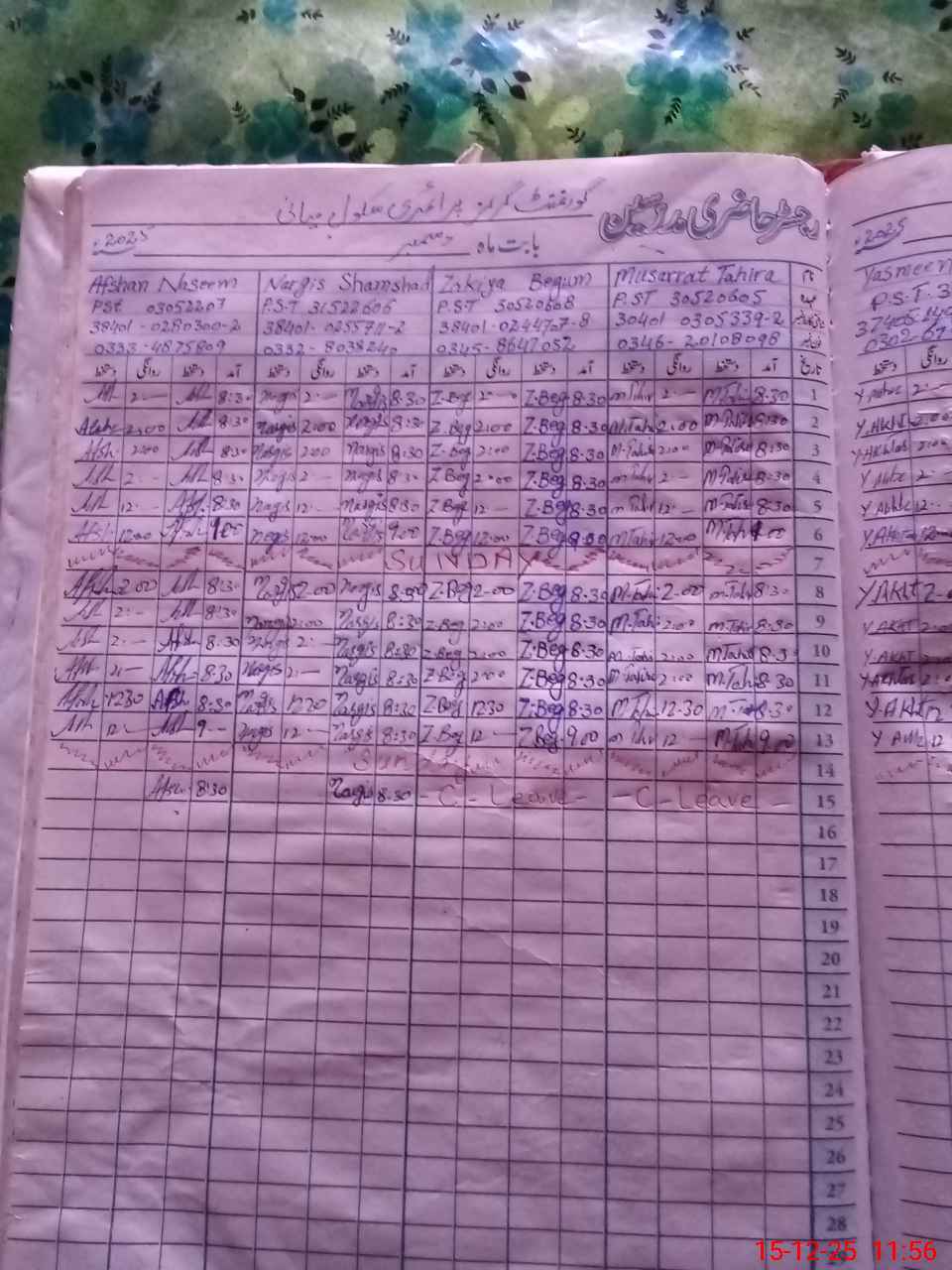 | CNIC | Full Name | Designation | R/C | Absence During Last Calender Month |