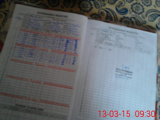 | CNIC | Full Name | Designation | R/C | Absence During Last Calender Month |