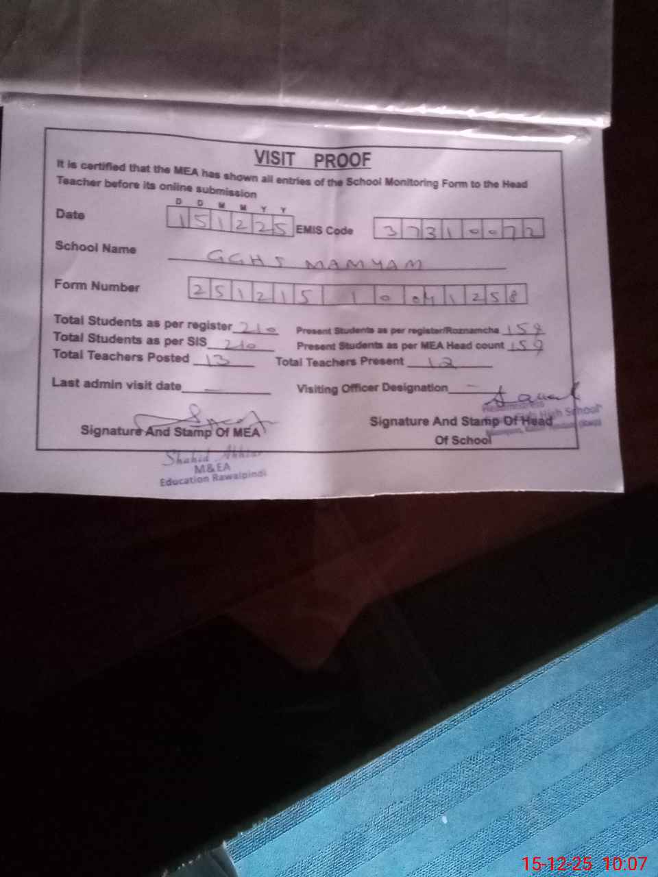 | EMIS Code: 37310072 | Name of School: GGHS MAMYAM | |||