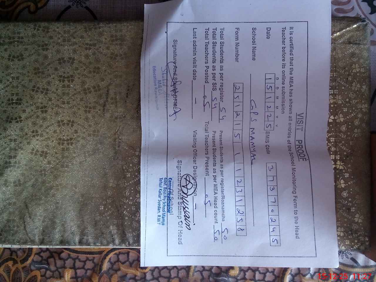 | EMIS Code: 37370245 | Name of School: GPS MAMYAL | |||