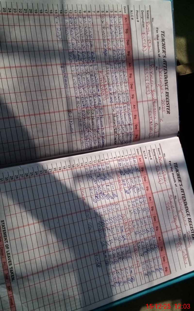 | CNIC | Full Name | Designation | R/C | Absence During Last Calender Month |