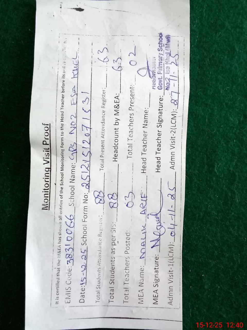 | EMIS Code: 38310066 | Name of School: GPS NO 2 ISA KHEL PO ISA KHEL TEH MIANWALI | |||
