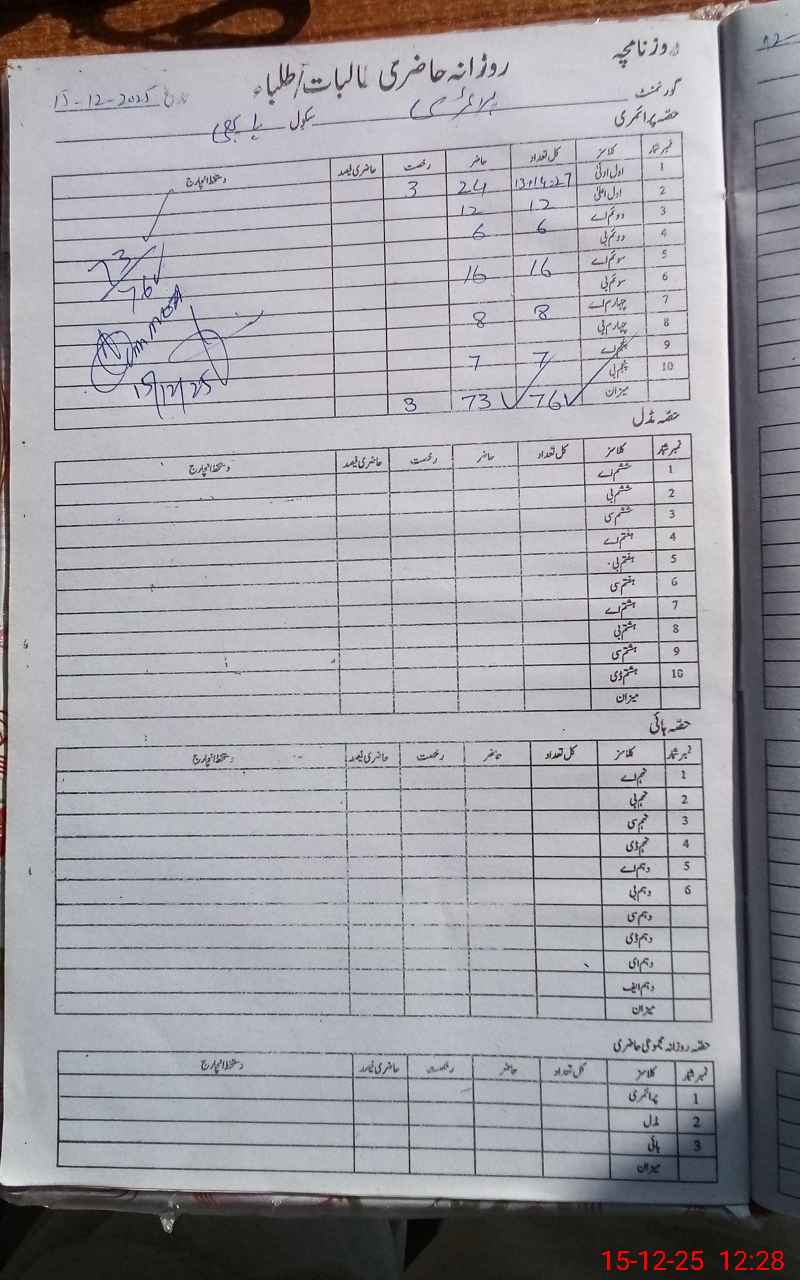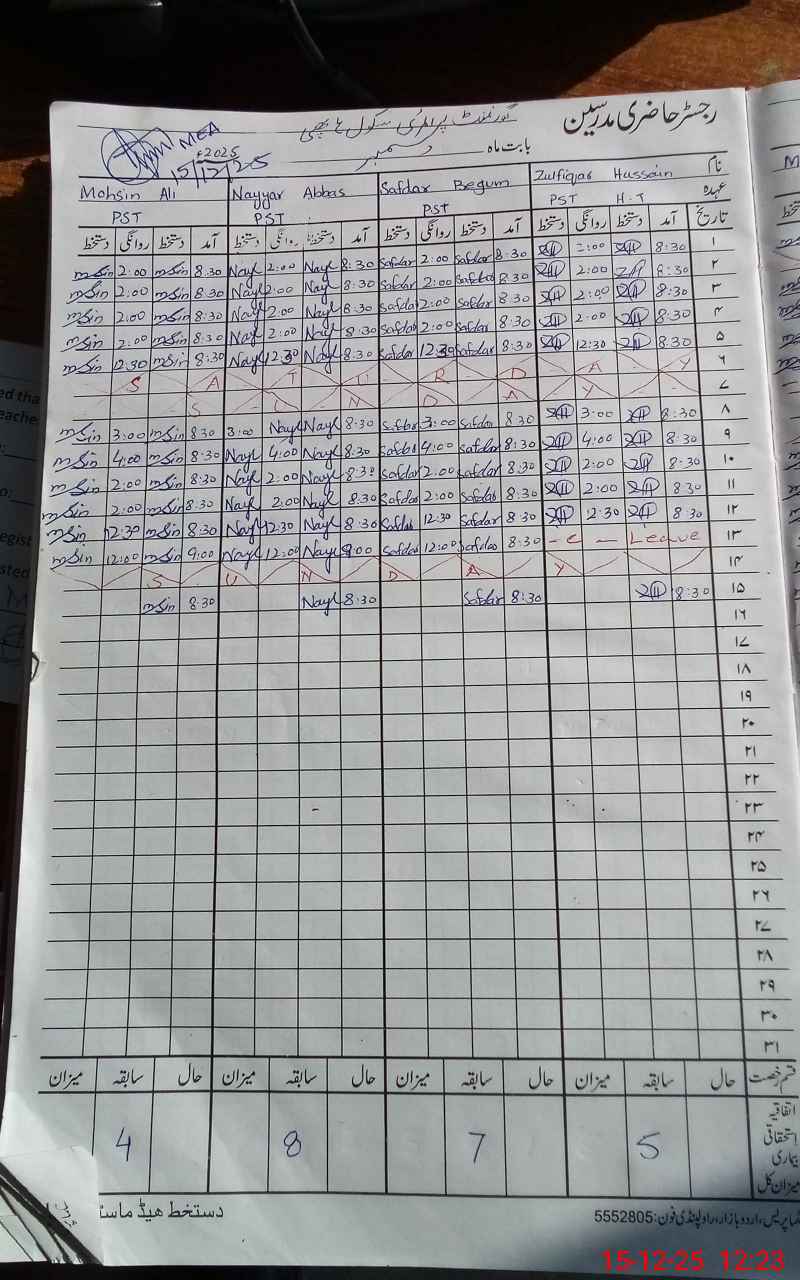 | Name: Zu**** Hu**** Designation: (School Headmaster's/Headmistress's) HEADMASTER Phone/Cell Number: 03**** |