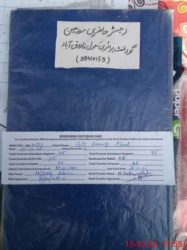 | EMIS Code: 38410153 | Name of School: GPS FAROOQ ABAD | |||