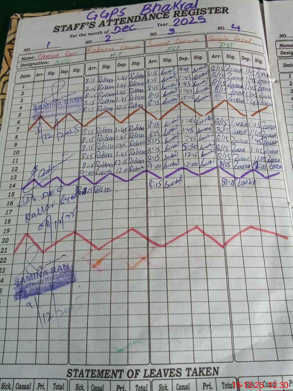 | CNIC | Full Name | Designation | R/C | Absence During Last Calender Month |