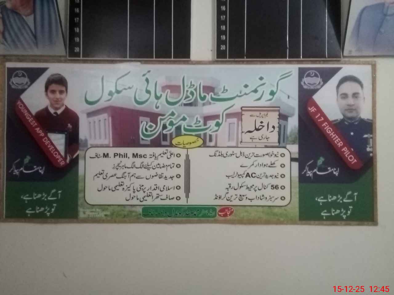 | EMIS Code: 38460900 | Name of School: GHS MODEL KOT MOMIN | |||
