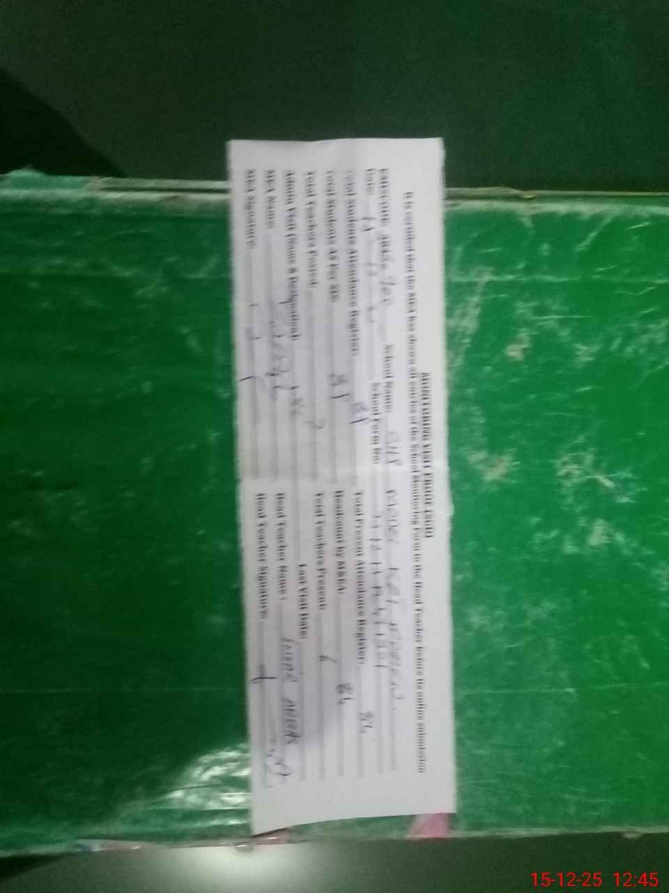 | Attendance Register | Head Teacher | MEA with School | Visit Proof |