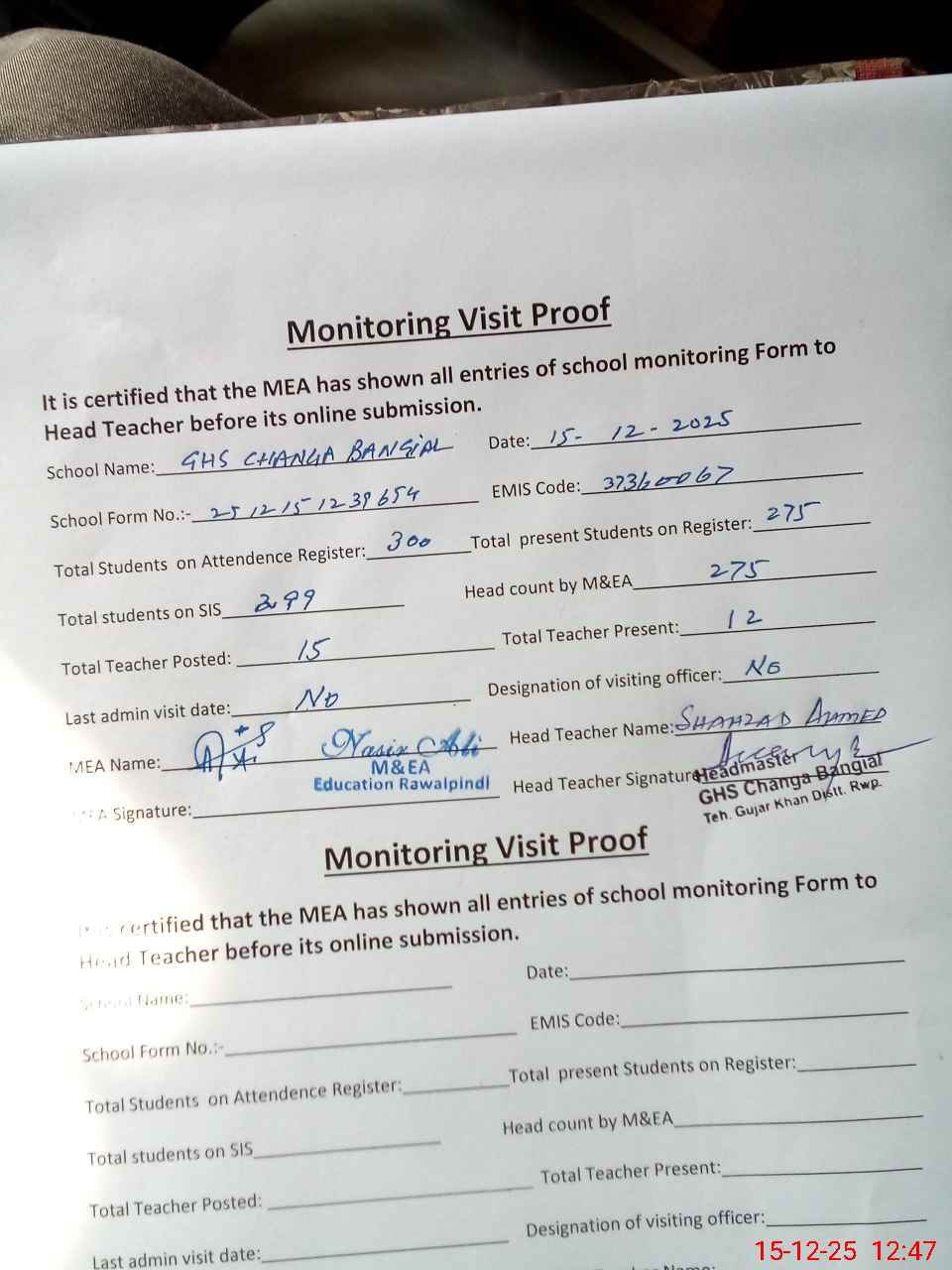 | EMIS Code: 37360067 | Name of School: GHS CHINGA BANGIAL | |||