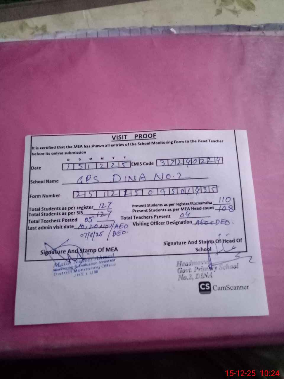 | EMIS Code: 37240224 | Name of School: GPS NO. 2 DINA | |||
