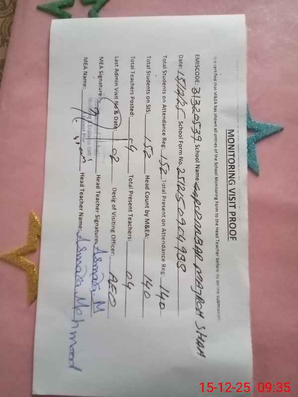 | Attendance Register | Head Teacher | MEA with School | Visit Proof |